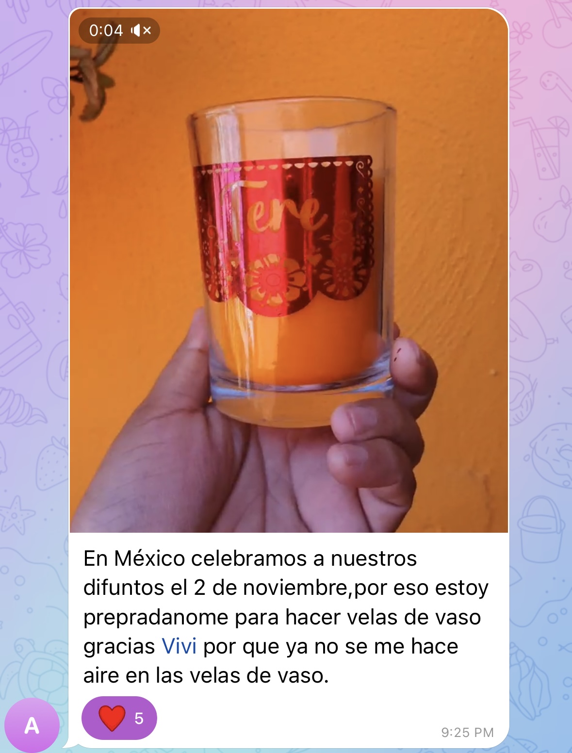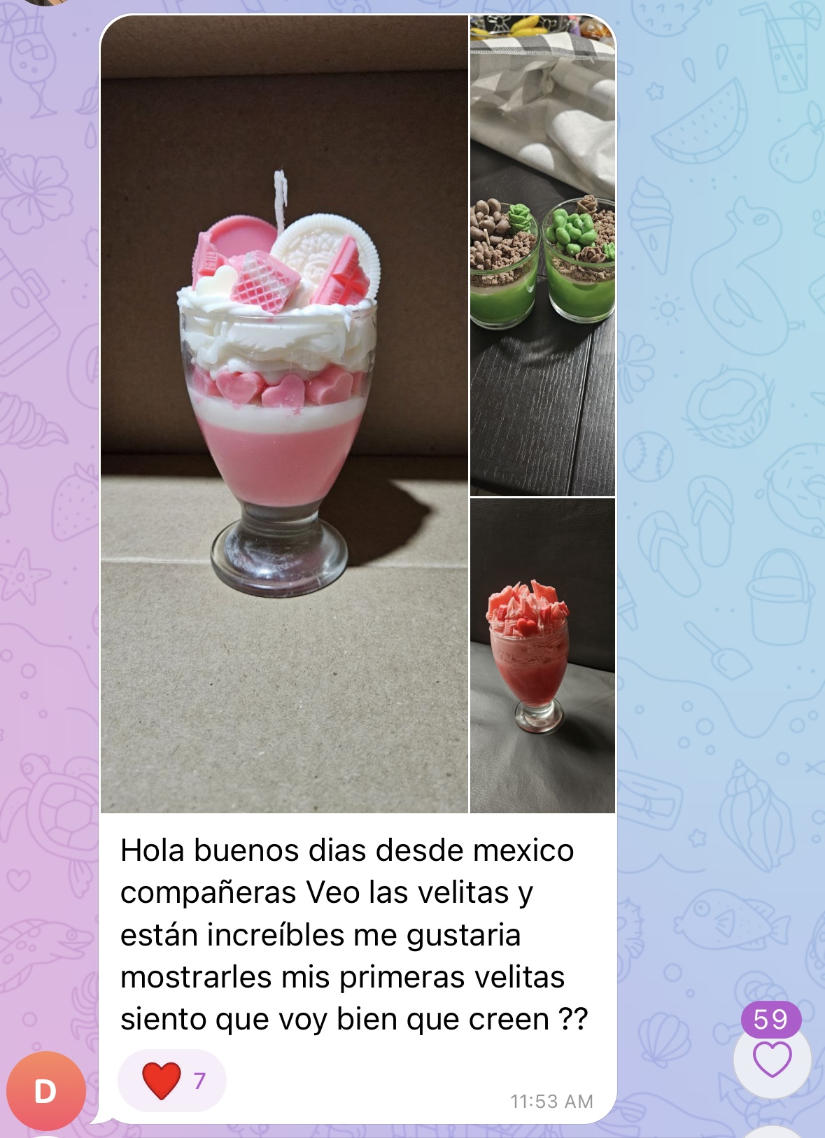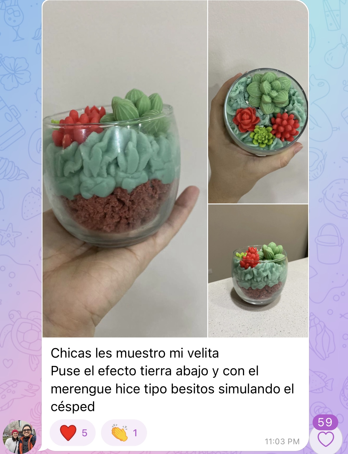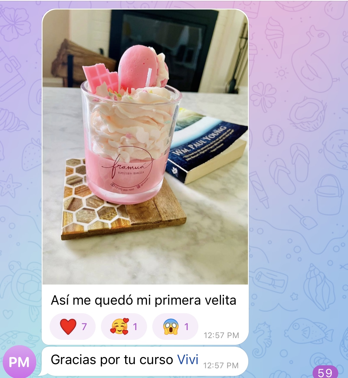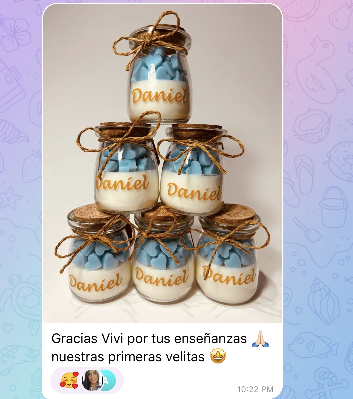Hola Viví, Quiero decirte que estoy encantada con tu curso, lo he visto de a poco por lo que actualmente trabajo, pero me siento muy inspirada por ti. Ya había tomado otro con otra persona pero o verdad la diferencia es muy grande y vale cada minuto… gracias por compartir tu conocimiento y espero pronto empezar con mis velitas para tener más tiempo con mi familia y hacer algo que de verdad amo (cuando era pequeña las hacía con mi mamá, obvio con parafina y algo menos de conocimiento)