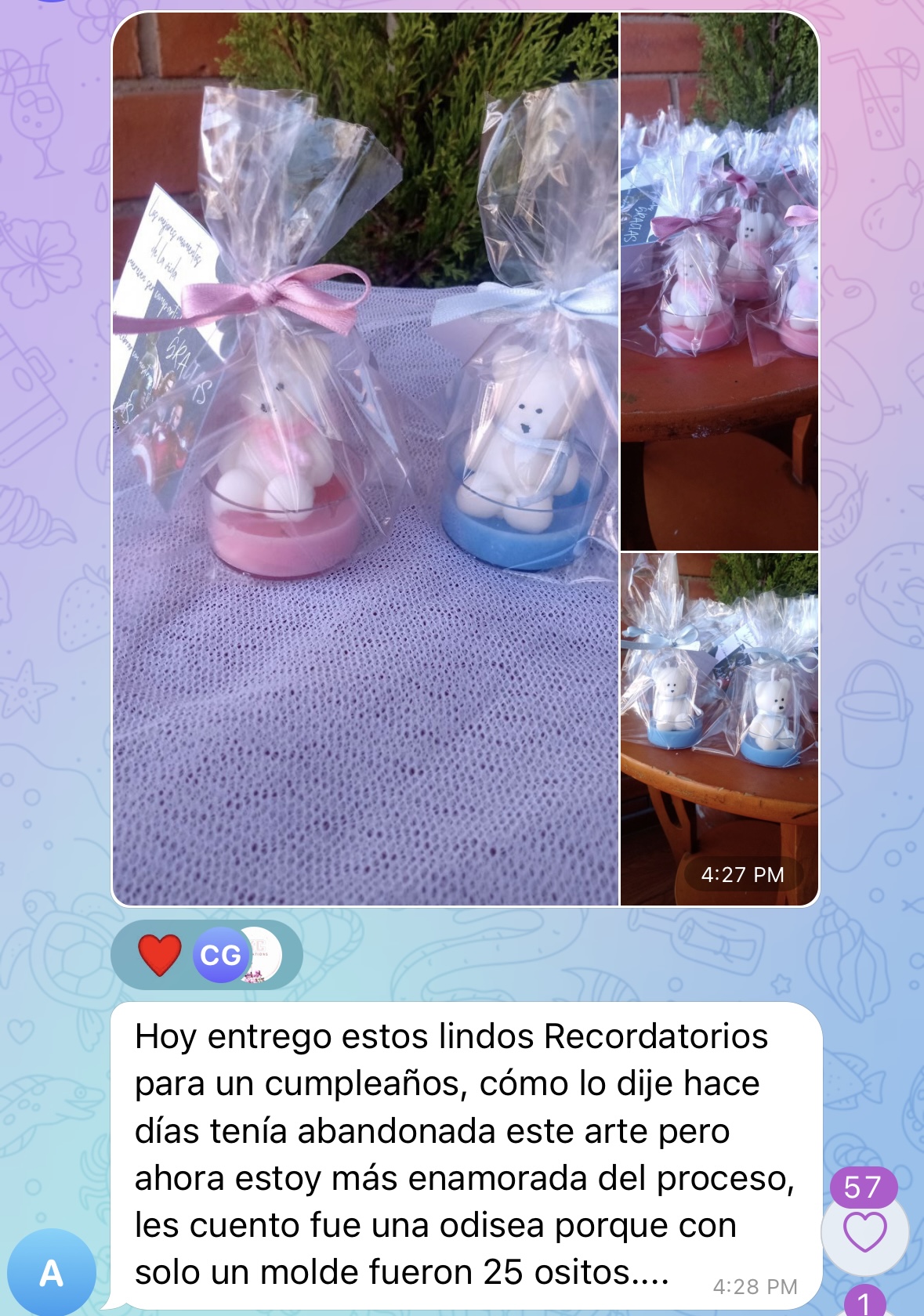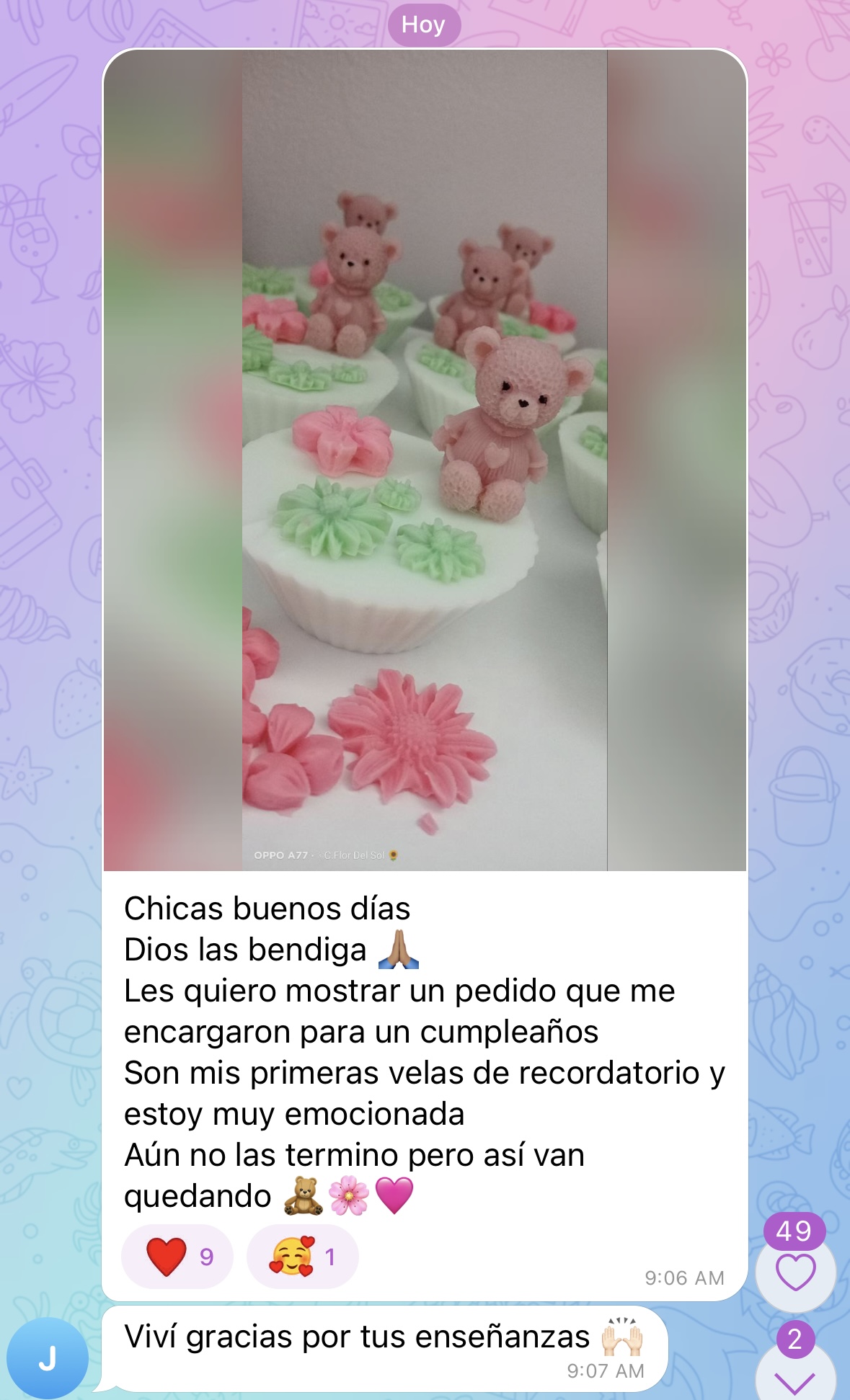 Viví yo tome tu curso, y es el mejor de los mejores se que me falta muchísimo por aprender y practicar, pero con tu curso yo si hice velitas de navidad me inspiraste para hacer cosas diferentes, teniendo tu punto de referencia, entonces desde ese punto de vista si se puede tener mucha creatividad e inspiración… el limite lo ponemos nosotr@s!!!!