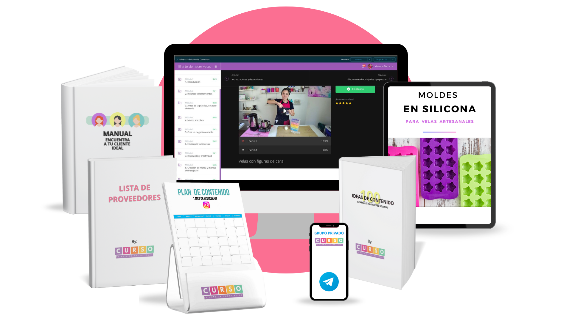 A diferencia de todo el contenido gratuito que puedas encontrar en Internet sobre el tema, en EL ARTE DE HACER VELAS, nos comprometemos con tu aprendizaje y nos aseguramos de entregarte todas las herramientas para que puedas emprender con ÉXITO en la industria de las velas artesanales y apalancarte de las redes sociales para potencializar tus ventas.